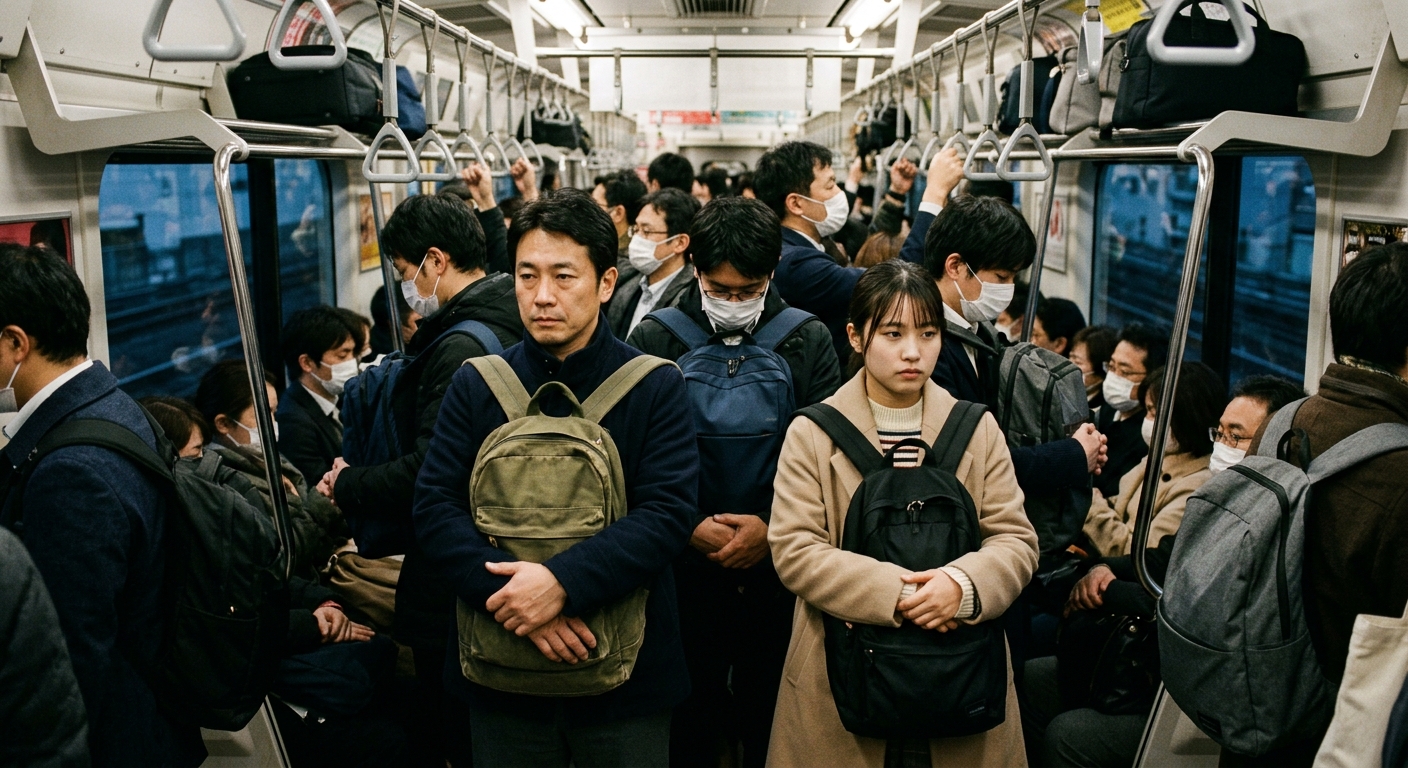 Son las ocho de la mañana en la línea Yamanote de Tokio. El vagón está repleto, pero el silencio resulta casi irreal. Cientos de personas comparten un espacio reducido y cada una de ellas parece haber minimizado su presencia al máximo: brazos pegados al cuerpo, mochilas contra el pecho, teléfonos en silencio, miradas fijas en las pantallas o perdidas en algún punto medio. Nadie habla. Nadie empuja. Todo fluye con una precisión que parece coreografiada.