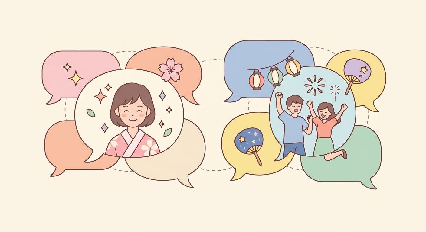 "Wasshoi!", "Tamaya!", "Kanpai!". Las palabras que se gritan en los eventos japoneses son el japonés más cercano a la emoción pura. No son gramática ni vocabulario formal: son la voz del corazón, la alegría que explota cuando una sociedad contenida se da permiso para celebrar. Cuando grites "kirei!" bajo los fuegos artificiales, nadie te pedirá conjugaciones. Solo sentirán que estás ahí, con ellos, viviendo el mismo momento.