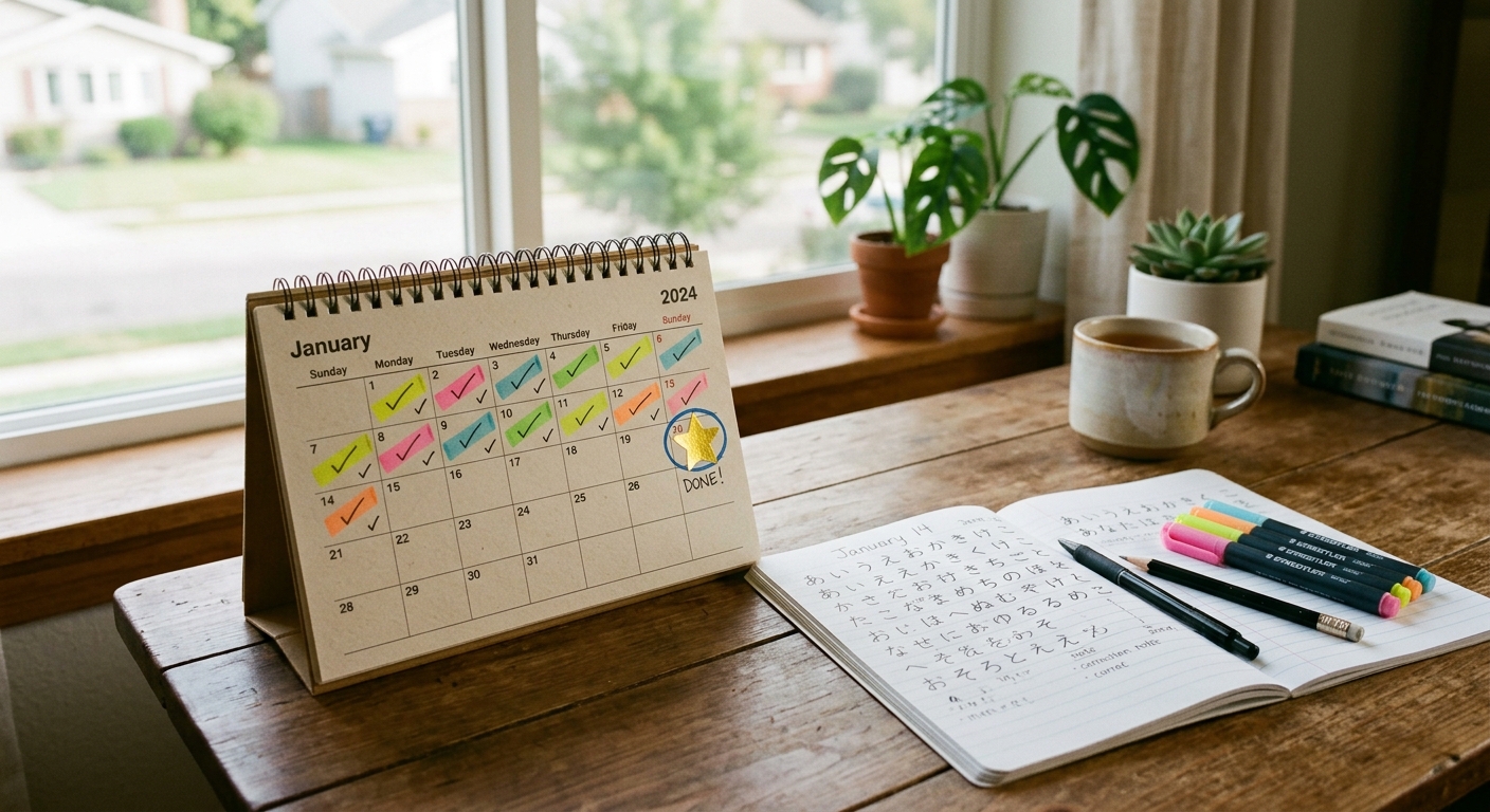 Felicitaciones por llegar hasta aquí. Ahora tienes todo lo que necesitas para dominar el hiragana en dos semanas. Tienes un plan claro, métodos científicamente probados, y la conciencia de tus ventajas únicas como hispanohablante.