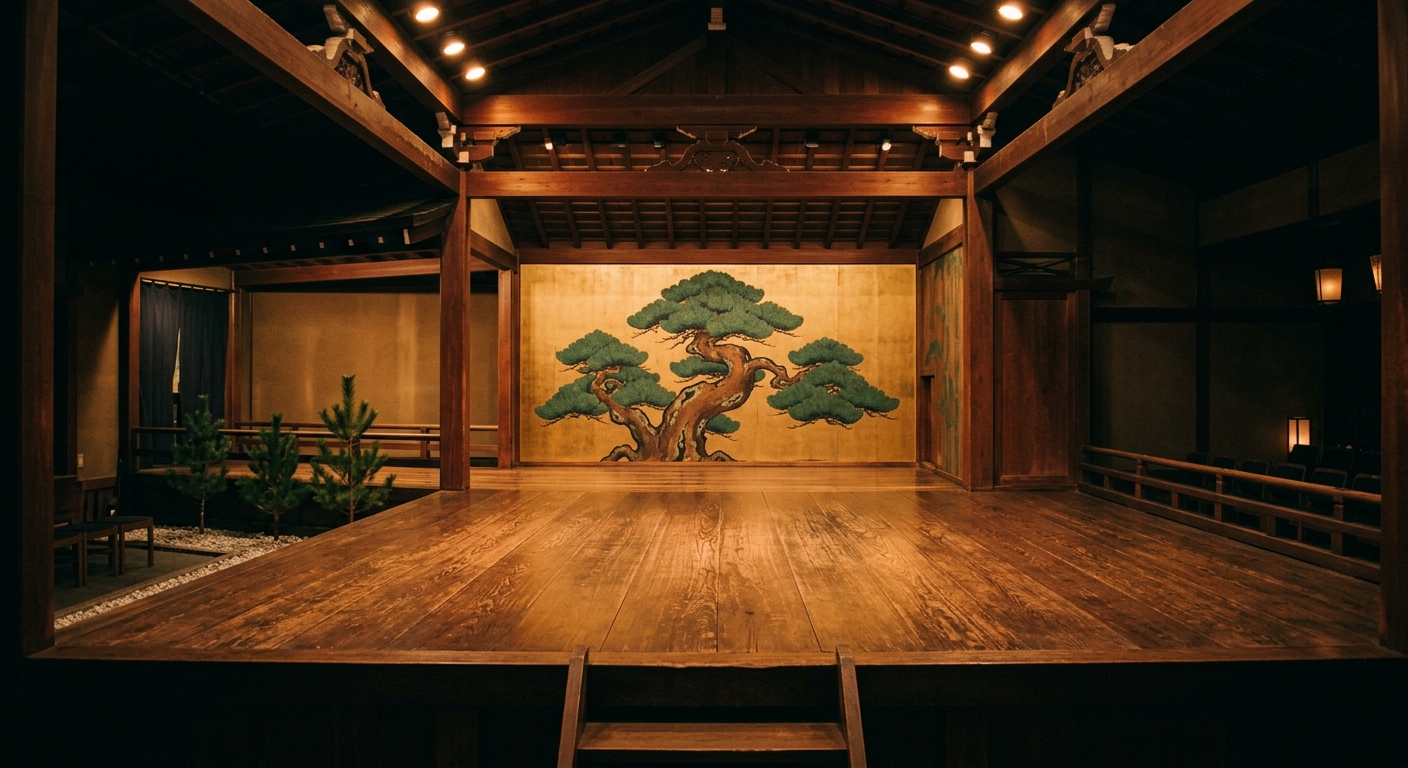 El 「橋掛かり」(hashigakari), el largo pasillo que conecta los bastidores con el escenario del nō, es ma hecho espacio teatral. Cuando un personaje recorre lentamente este puente, no simplemente se desplaza de un punto a otro. Transita entre mundos: entre lo cotidiano y lo sobrenatural, entre el presente y el pasado, entre lo visible y lo invisible. La lentitud del recorrido permite que el espectador habite ese espacio intermedio junto con el personaje.
