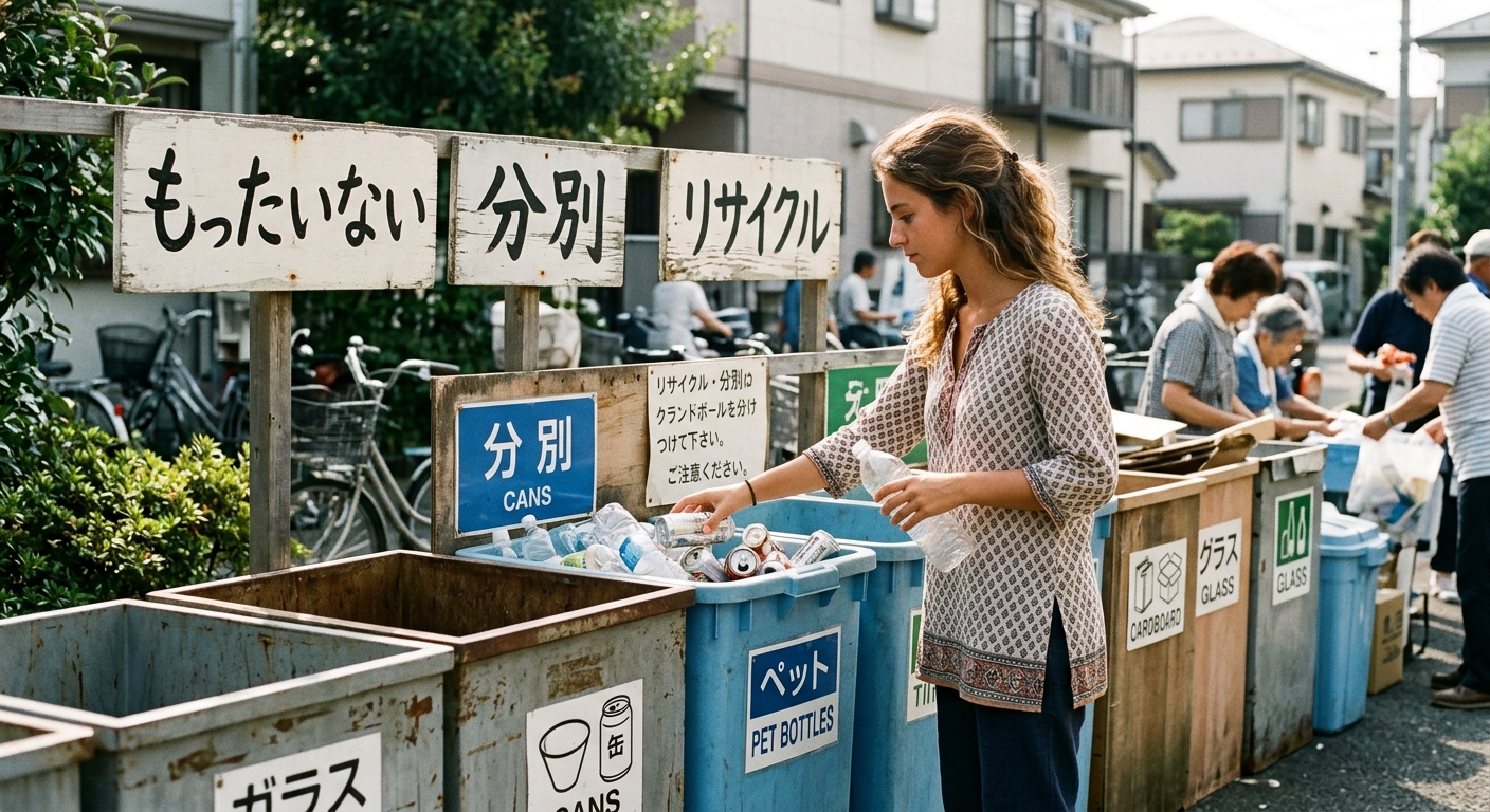 Los hogares japoneses suelen tener sistemas de separación de basura sumamente detallados. Plástico, papel, vidrio, metal, residuos combustibles y no combustibles se separan en categorías distintas. Es laborioso, pero muchos japoneses realizan este esfuerzo con gusto para promover el reciclaje y reducir el desperdicio. Esto también es una práctica de mottainai.