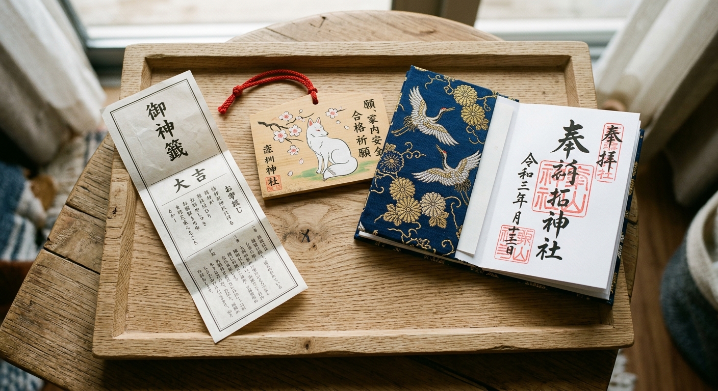 El Japón espiritual no es solo un paisaje que se contempla. Es una práctica que se toca, se escribe, se guarda y se lleva encima. 「おみくじ」(omikuji), 「絵馬」(ema), 「御朱印」(goshuin), 「お守り」(omamori) — son las pequeñas herramientas materiales con las que los japoneses interactúan con lo sagrado. Las usan para recibir una fortuna. Para pedir aprobación en un examen. Para dejar constancia de su visita. Para llevarse un fragmento de bendición a casa. Y cualquier visitante, con un mínimo de respeto, puede hacer lo mismo.