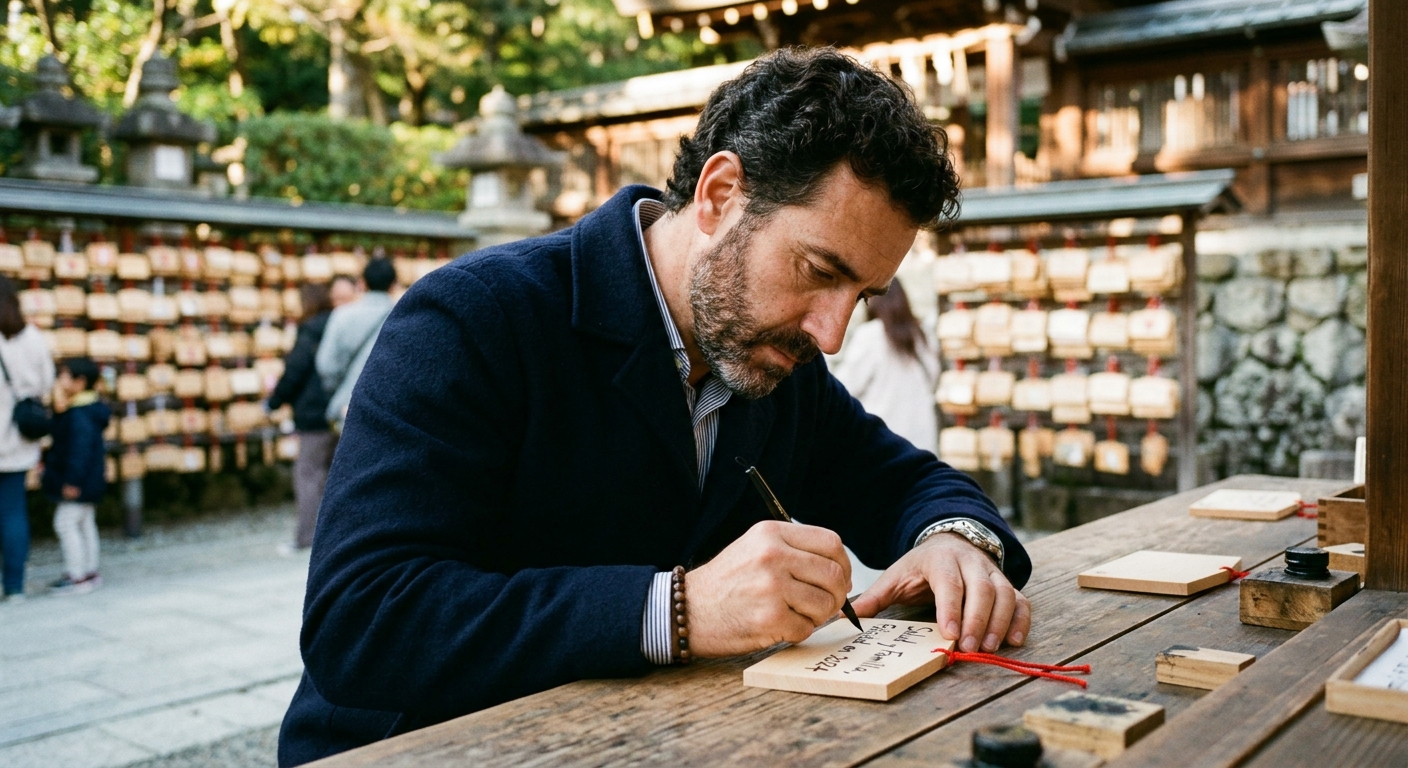 Lo que estas prácticas ofrecen es algo que una foto no puede capturar: la experiencia de hacer algo con tus propias manos en un espacio sagrado. El pequeño vuelco del estómago al abrir un omikuji. La quietud que sientes al escribir tu deseo más íntimo en una tablilla. El sonido del pincel sobre el papel cuando el calígrafo traza tu goshuin.