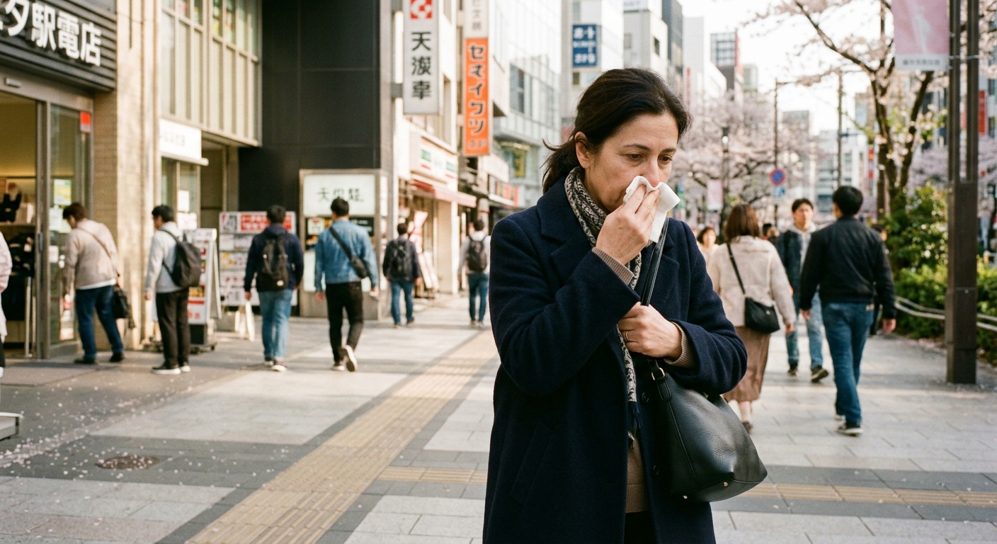 La kafunshō (花粉症) — alergia al polen — afecta a aproximadamente el 30% de la población japonesa. Cada primavera, el país entero se convierte en una batalla contra los estornudos y el goteo nasal. Las estrategias de supervivencia incluyen cubrebocas, cantidades industriales de pañuelos, medicamentos antihistamínicos y visitas frecuentes al baño para sonarse en privado.