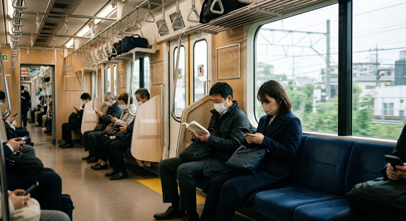 Maquillarse en el tren es uno de los tabúes sociales más debatidos en Japón. La perspectiva tradicional es clara: arreglarse es algo que se hace en casa o en el baño, no en un espacio público. Se percibe como "mostrar un proceso privado" — similar a la lógica de sonarse la nariz.